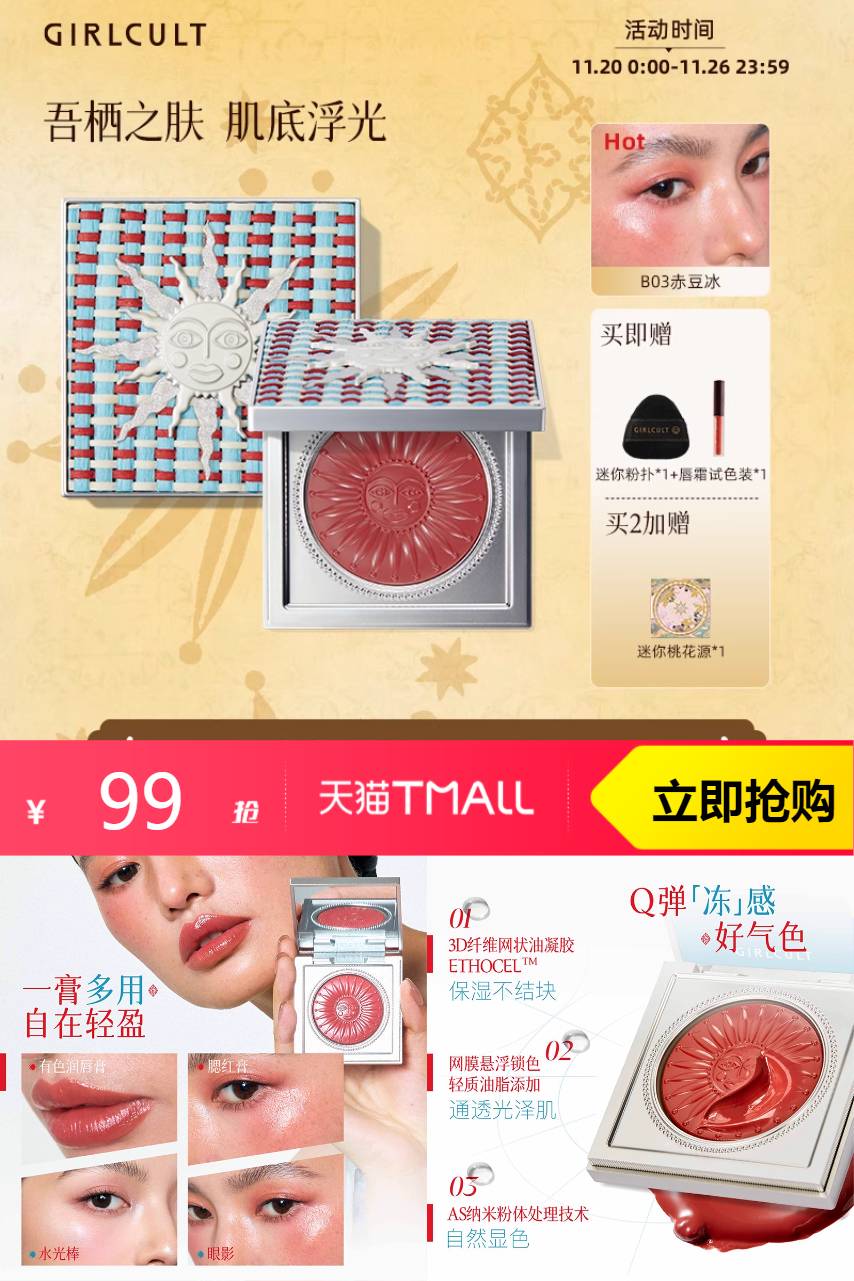 【领券减20,淘金币抵扣0.99,到手98.01元】多效合一,果冻质地,轻松打造元气妆容,持久显色,润唇丰盈,多彩矜贵,提亮不浮。