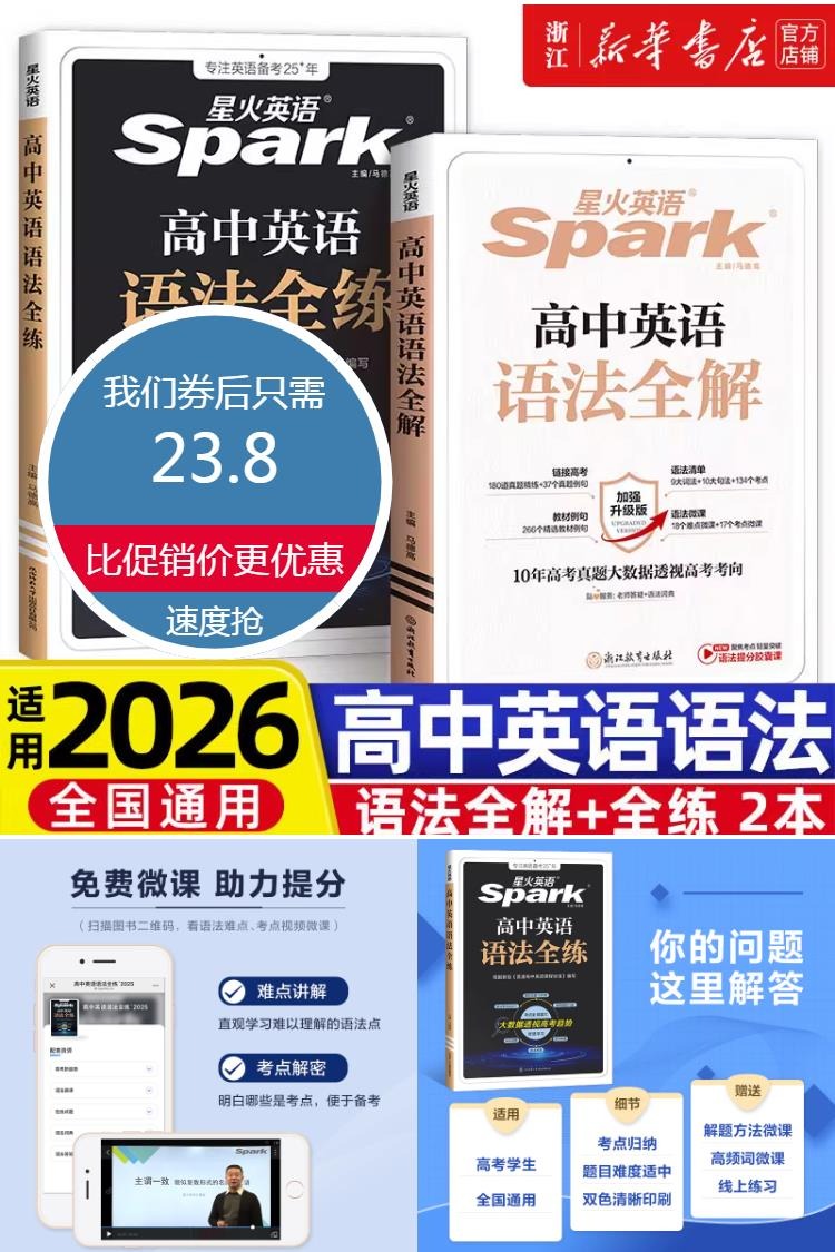 【新华正版】2026星火英语高中英语语法全解,语法全解+全练2本,考点清单,考点精练,综合检测,真题实战,626个考点精讲,1285道模拟试题,75篇高考题型,36节语法微课,高考语法书课复习资料!