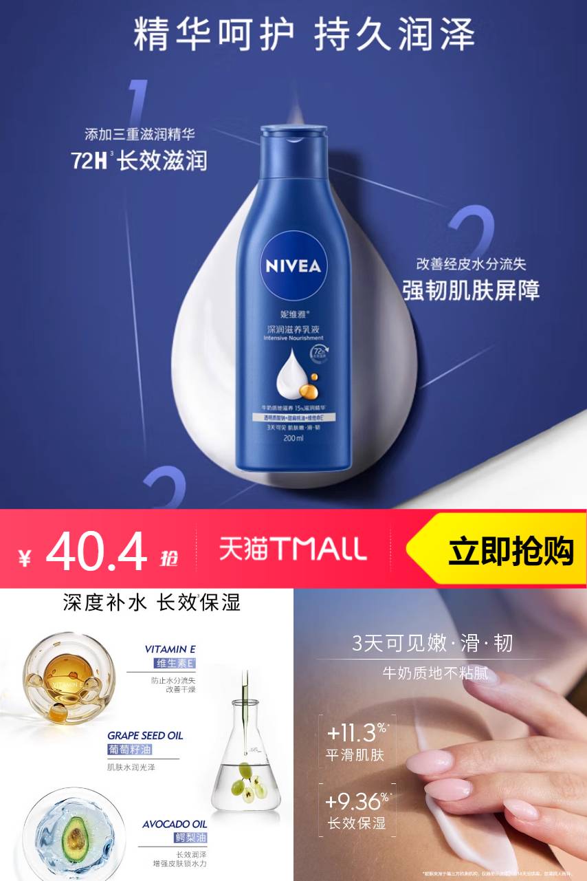 【淘金币3.9元,新客福袋5元,88vip到手30元】妮维雅身体乳深层润肤乳液,保湿补水润肤露护肤舒缓