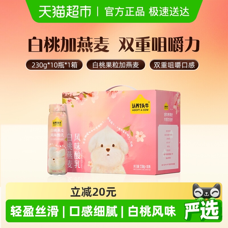 认养一头牛风味酸奶230g*10瓶白桃燕麦口味