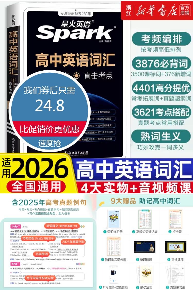 【新华书店正版】2026适用星火英语高中英语词汇,4大实物+音视频课,贴近高考考情,掌握词汇考法与用法,背单词划重点,大词量自信备考,直击高考,真题例句,大词量、划重点背单词,助力考试拿高分!