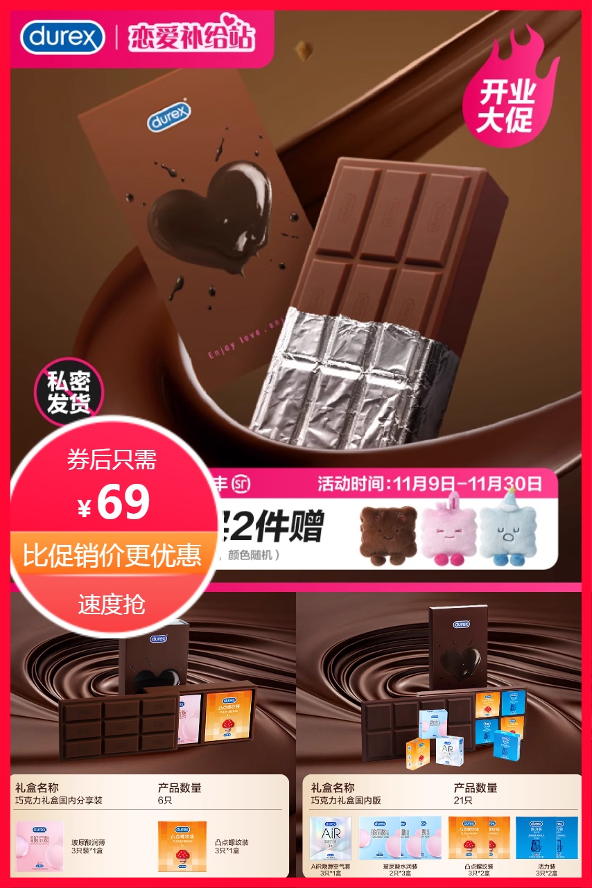 下拉淘金币到手63.83,杜蕾斯巧克力礼盒,全新升级巧克力香味,随时随地给你的爱情加点甜