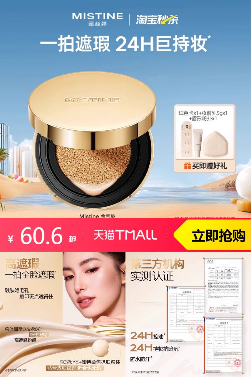 【赠同款替换装+试色卡+试色卡,抵扣7.26元淘金币+88vip到手50.68】,遮瑕保湿持久控油皮混干皮可用,一拍遮瑕24H巨持妆,不卡粉油干皮都可用。