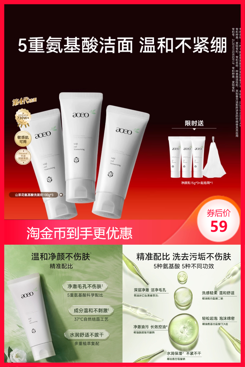 【山茶花氨基酸洁面】淘金币到手约55.13 清洁毛孔+温和不刺激+舒缓修复!!5种氨基酸深层清洁!适合敏感肌!不起泡也滋润!!