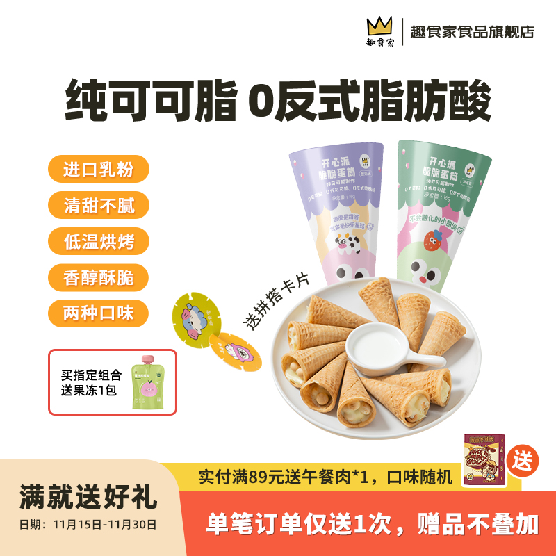 趣食家食品旗舰店推出的脆蛋筒饼干,采用0反式脂肪酸配方,口感酥脆,香甜可口,是您家庭聚会、朋友聚餐的理想选择。这款饼干采用天然食材制作,健康美味,适合各个年龄段的人群食用。