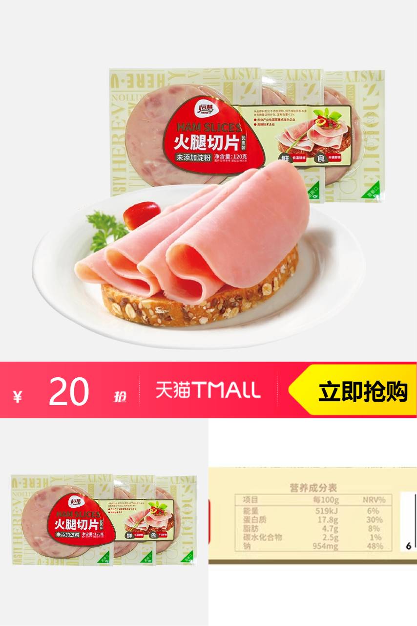 【拍4,满2件打9.5折减5.8,到手14.2】拍4 恒慧火腿切片120g*4,不添加淀粉!