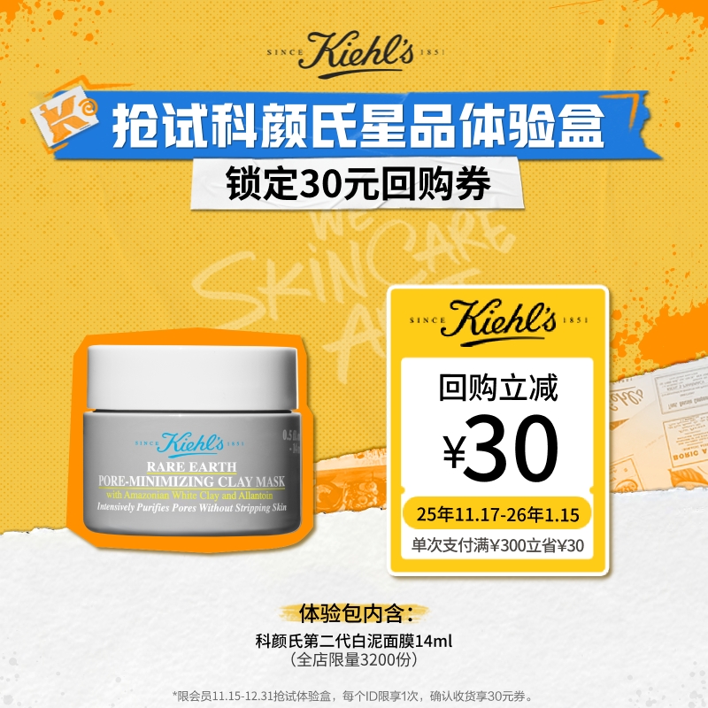 科颜氏29.9元体验盒白泥面膜高保湿面霜安白乳液旅行装享30元券
