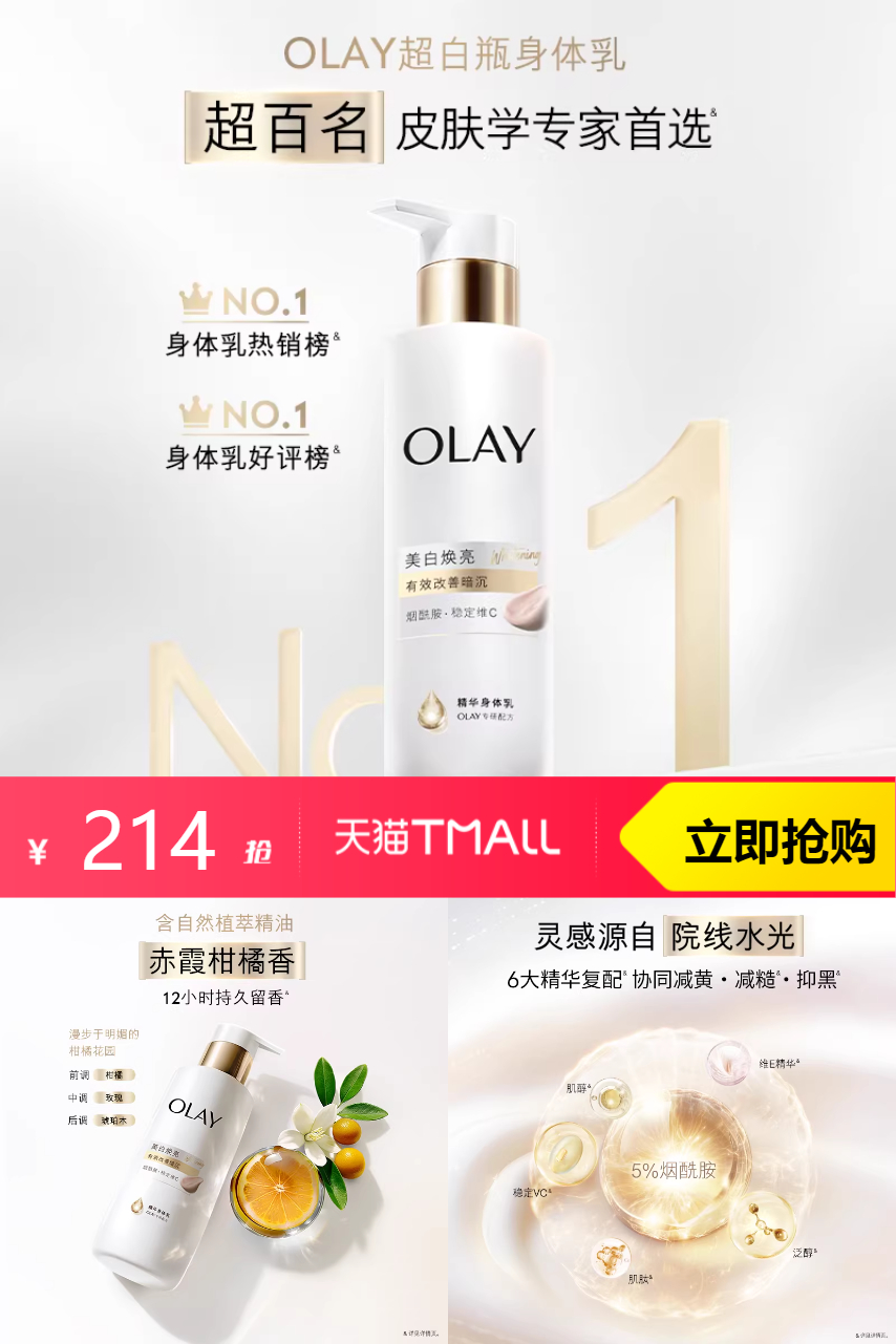 【立减85元,拍1赠美白身体乳90g*2】玉兰油美白焕亮精华乳烟酰胺滋润补水身体乳,赤霞柑橘香,香氛蕴含自然植萃精油。