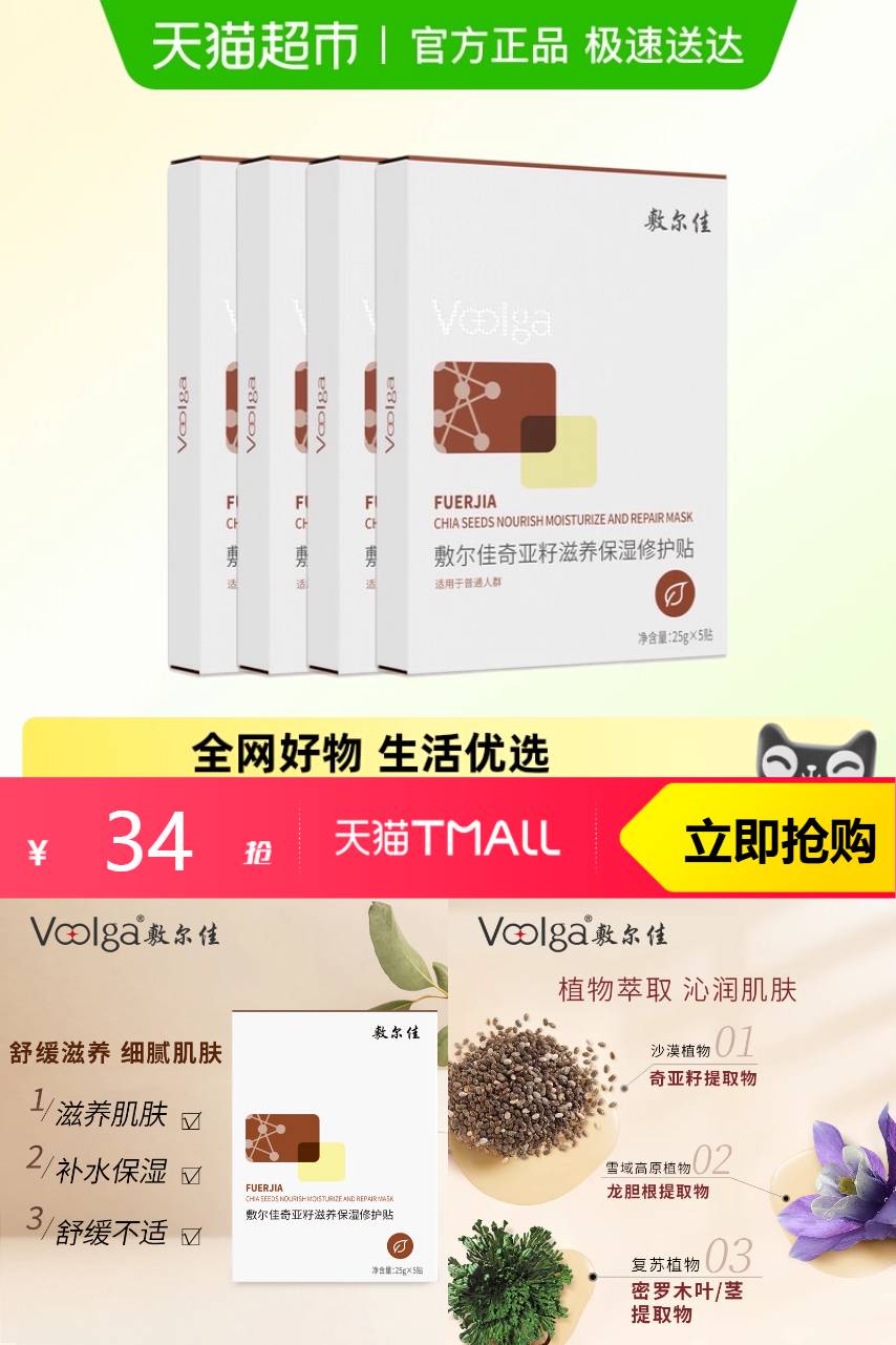【原价69-立减32-淘客劵5-88vip1.7-淘金币 2.69-88折消费券3.36 =24.25】满满补水力,滋养脆弱肌~