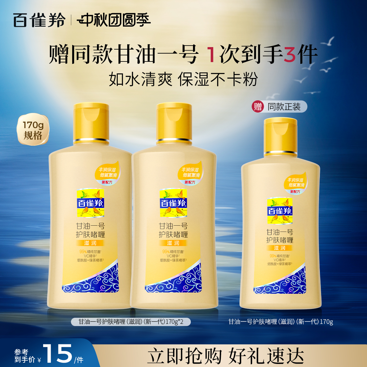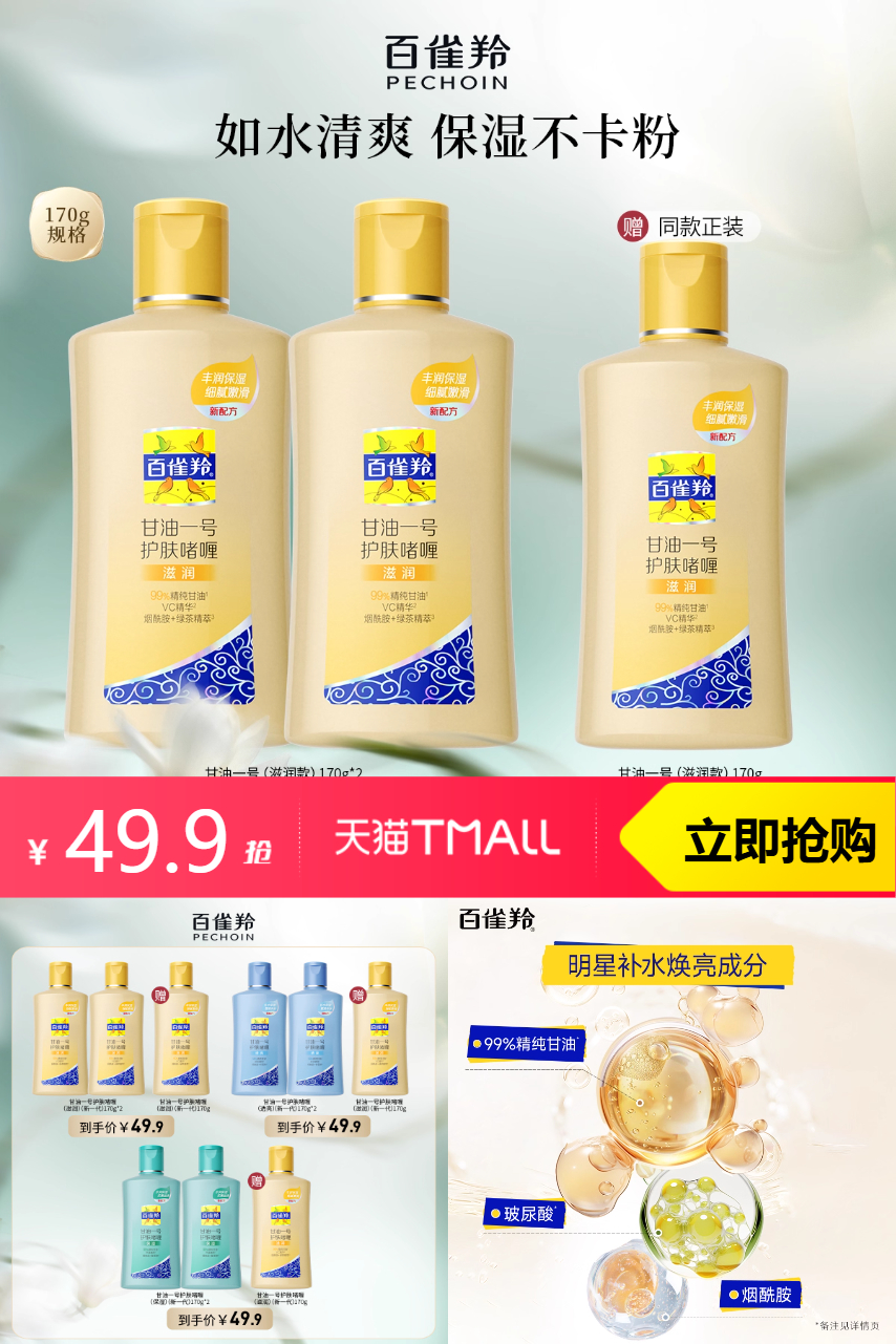 【买就送维C滋润170g,到手3瓶;淘金币减3.27,到手46.63】【赠:同款甘油一号170g】明星产品甘油一号,清透补水·滋润锁水·柔嫩焕亮,百雀羚甘油一号护肤啫喱正品官方旗舰店