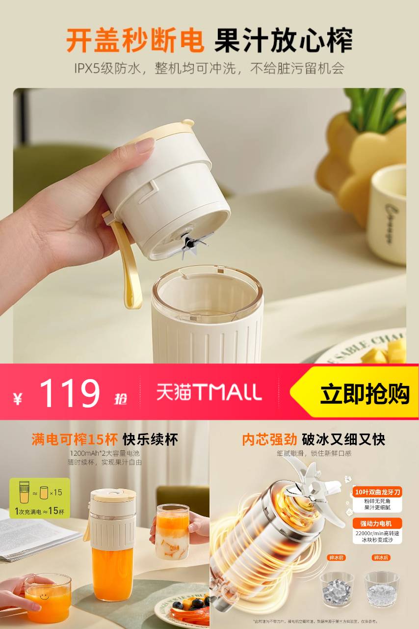 【88vip+淘金币抵8.18+国补到手89.14】九阳榨汁机多功能便携果汁机,奶昔搅拌料理机小型家用榨汁杯LJ525