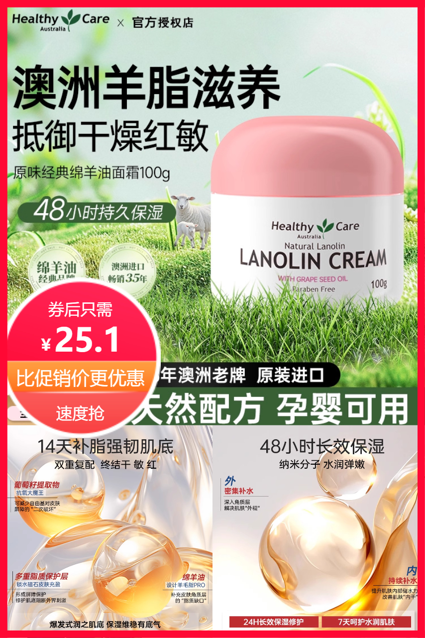 HealthyCare葡萄籽润肤霜,澳洲进口 + 成人儿童适用 + 冬季必备!!长效保湿!深层滋养!全家共享!!关键是柔滑不油腻!!