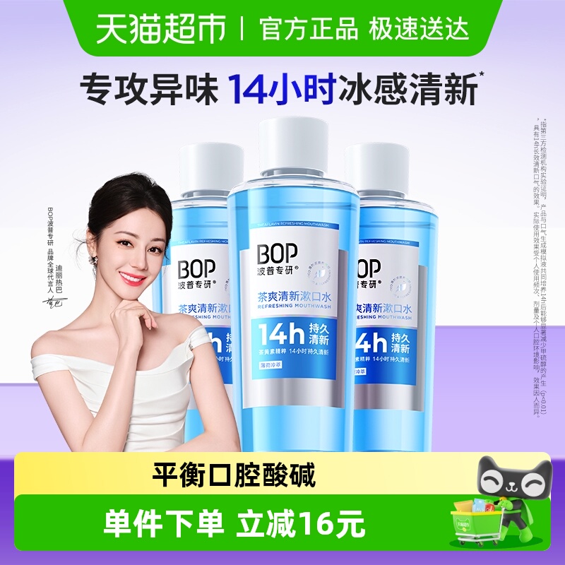 【天猫超市优选】bop清新口气茶爽薄荷冷萃瓶装漱口水,让你轻松拥有清新口气。适合日常使用,有效去除口臭,清新口气一整天。