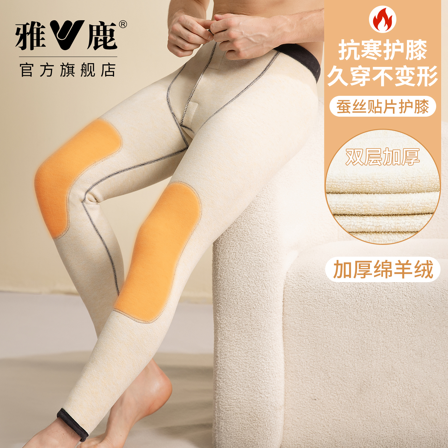 【加厚护膝】雅鹿加绒保暖裤羊毛蚕丝贴片男士发热保温打底秋裤冬