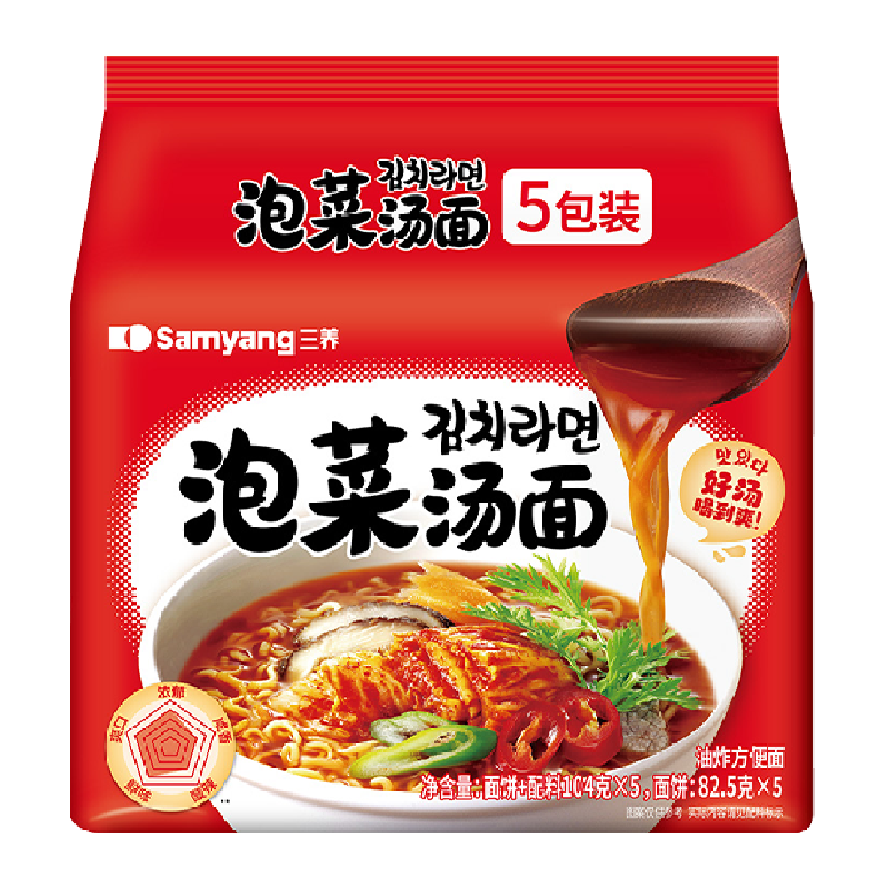 【下拉详情享优惠】韩国三养泡菜汤面104g*5袋辣白菜方便面拉面