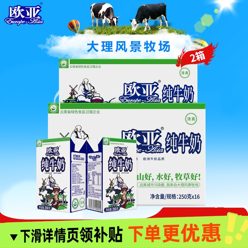 工厂直发欧亚高原全脂纯牛奶250g×16盒2箱早餐乳制品