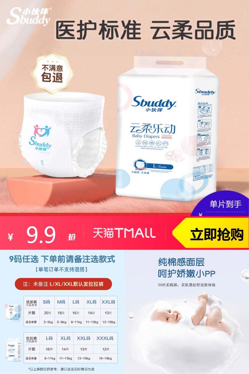 【单品直降及店铺优惠减7 首单礼金减3 到手9.9】医护标准,高端云柔新疆棉系列,甄选抑菌长绒棉,透气亲肤,高分子魔力芯体吸收小马达,瞬吸大尿量,畅玩一整天,宝宝持久干爽