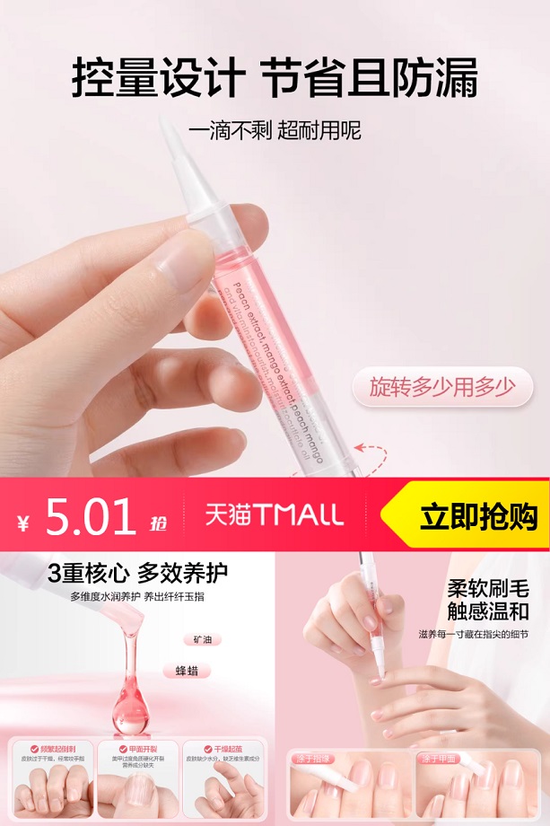 【立减3.12元】欧亿姿指缘油!3重核心,多维度水润养护,养出纤纤玉指。旋转多少用多少,控量设计,节省且防漏。柔软刷毛,触感温和,滋养每一寸藏在指尖的细节