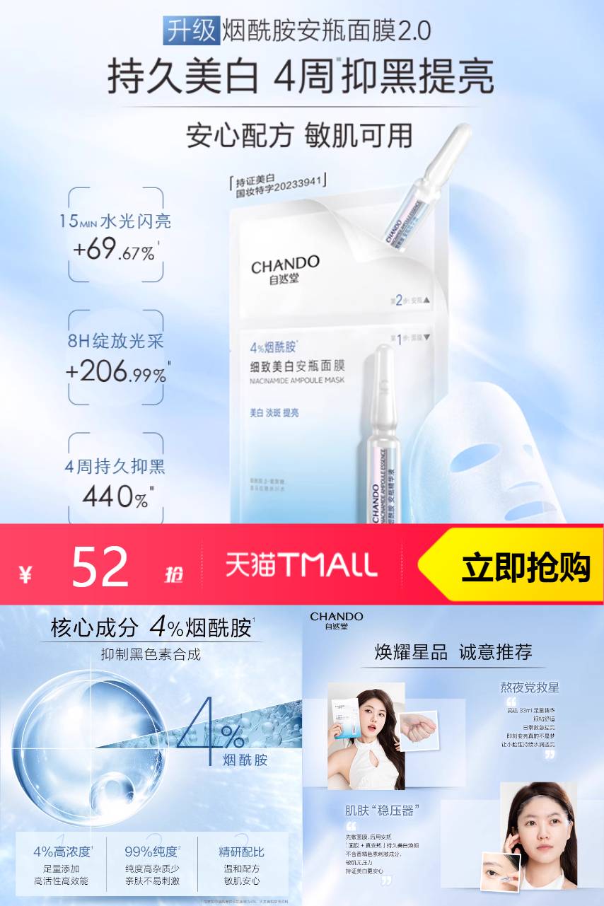 【下拉超补拍3件,147-券8-立减87=52元】(任选3件)自然堂烟酰胺安瓶面膜15片,保湿舒缓 沁润补水敏肌可用 店铺爆款。