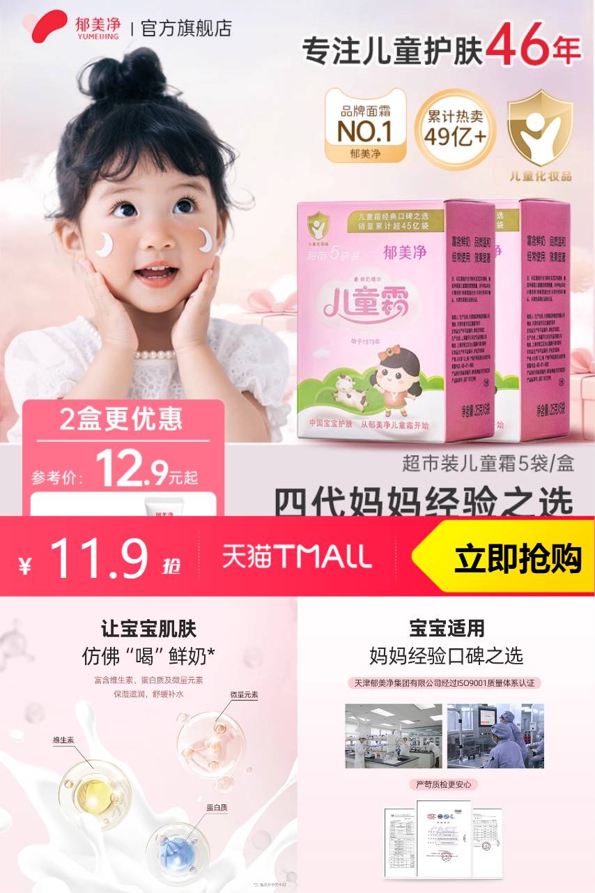 【淘金币0.5,叠88VIP冬焕新消费券200-20,到手10.3左右】郁美净儿童面霜超市装保湿滋润25g*5,富含维生素、蛋白质及微量元素滋润不干燥,远离红干痒~