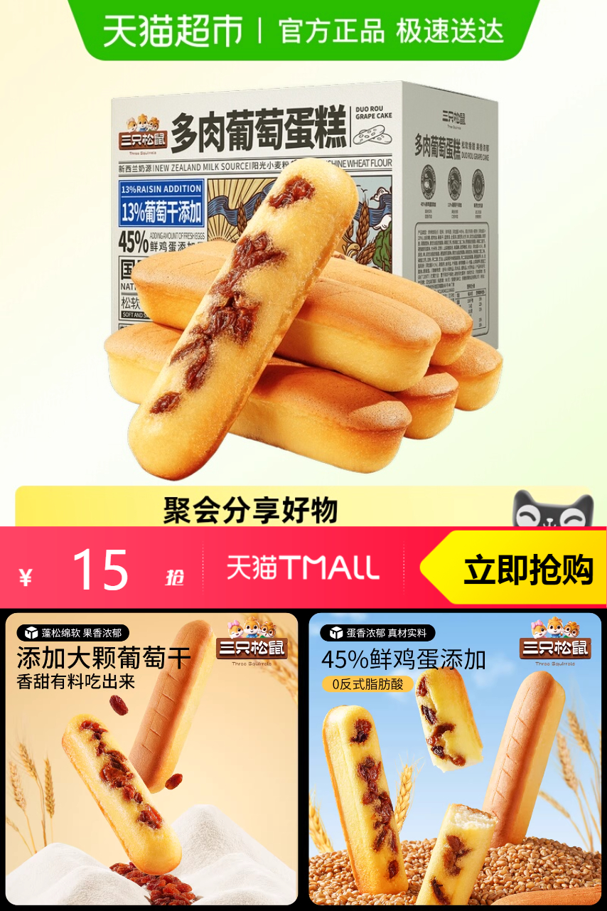 【88vip减0.75,淘金币减0.79,到手13.46,有】三只松鼠多肉葡萄蛋糕面包太绝了!松软面包裹着葡萄果肉,酸甜爆汁超清新,一口下去满是果香,早餐、解馋都合适,囤货超可~