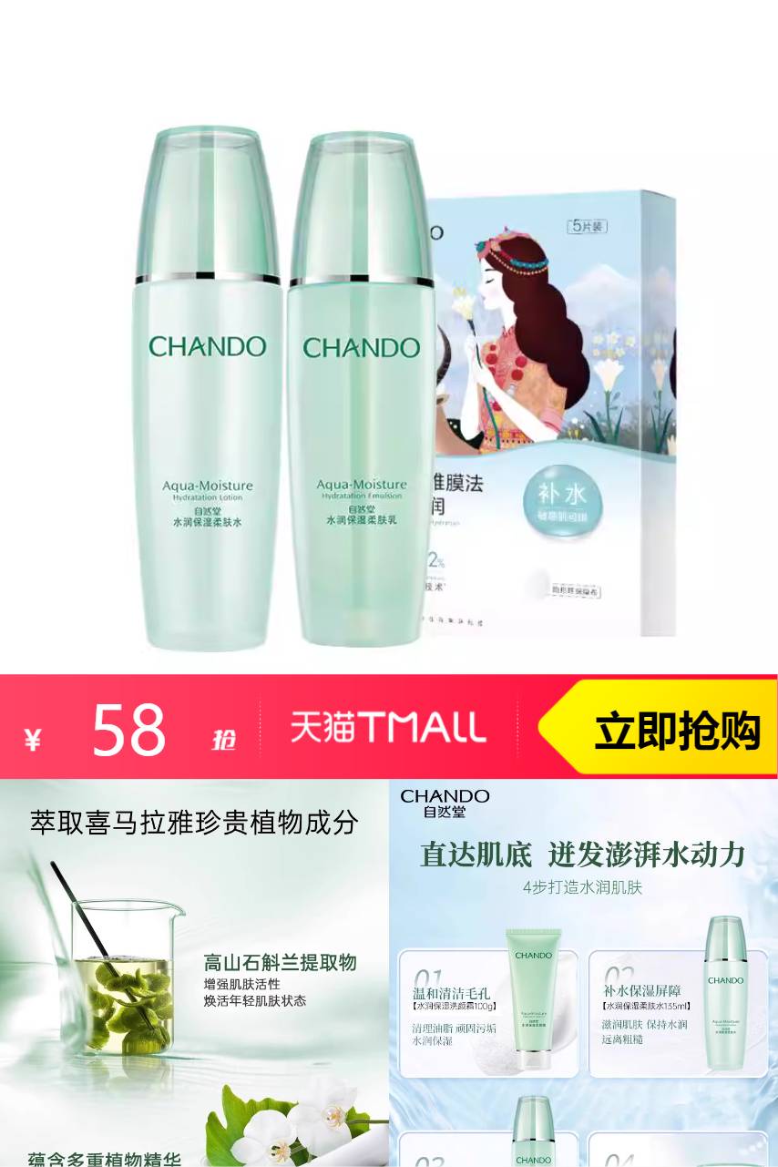 【每天10点下拉超补页面下单 99-券7-立减34-淘金币1.98-88vip95折2.9-淘礼金6.8=46.32元】自然堂水润系列护肤套装爽肤水乳液面膜,改善粗糙,嫩滑肌肤~