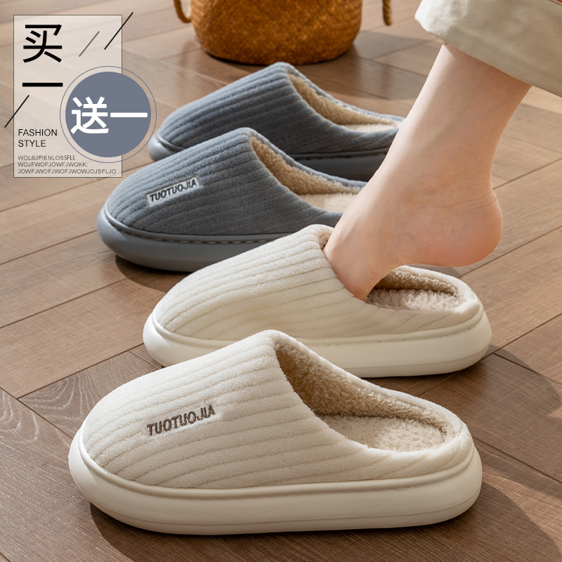买一送一棉拖鞋女款冬季2025新款室内家居一对毛绒保暖情侣棉拖男