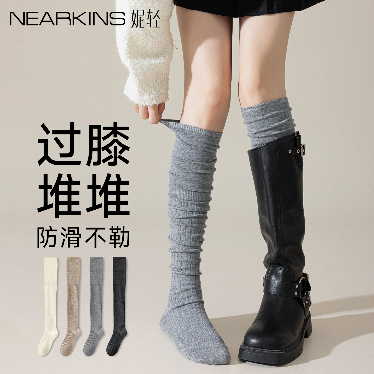 搭配靴子的袜子灰色过膝堆堆袜女春秋羊毛加长筒靴压力瘦腿高筒袜
