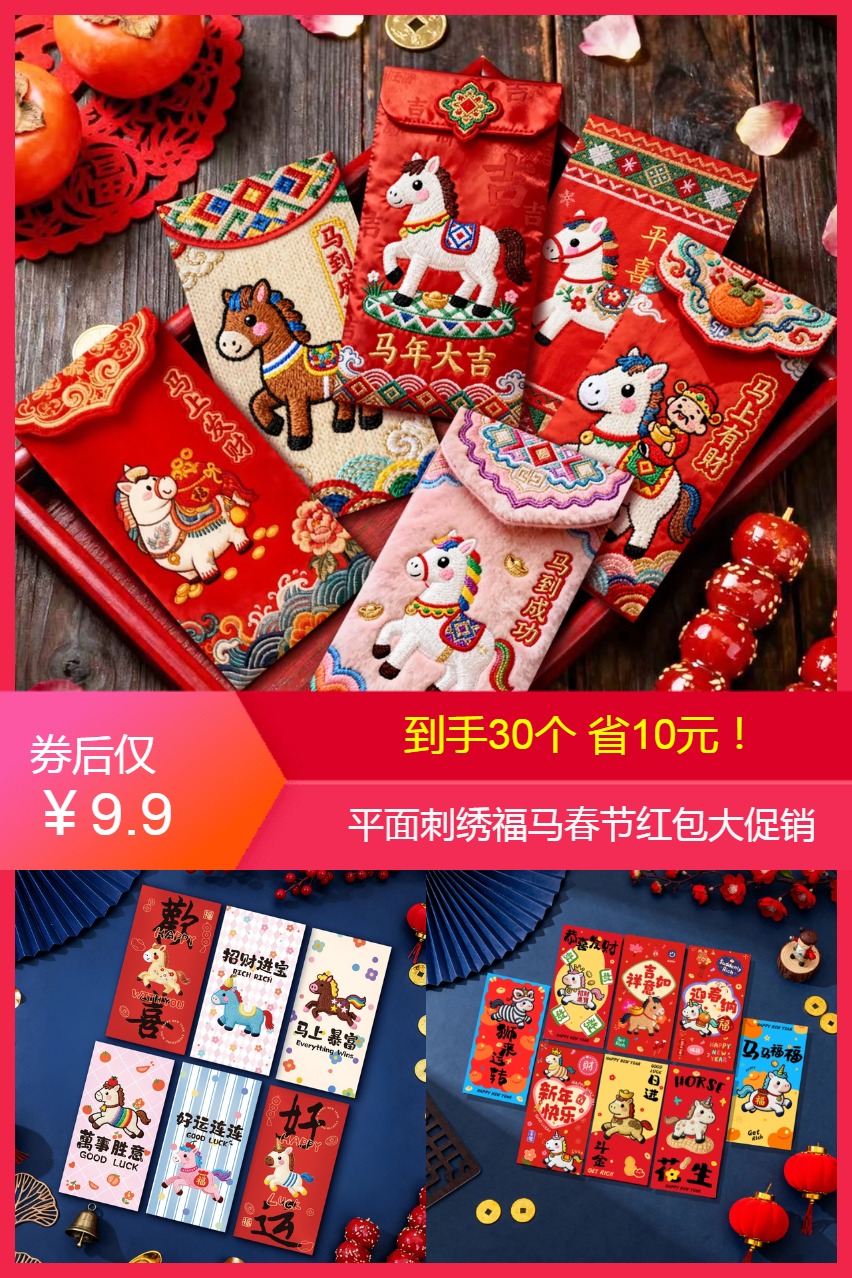 多款可选9.9亓到手30个【2026年新款·福马萌马系列春节红包】🐴✨手绘插画风格+平面刺绣质感,将传统祝福融入现代可爱设计,精致刺绣纹理细节,触摸得到的新春心意,春节压岁钱・新年礼物・公司福利・婚礼回礼,让萌马带着刺绣祝福,跑进千家万户的团圆时刻~