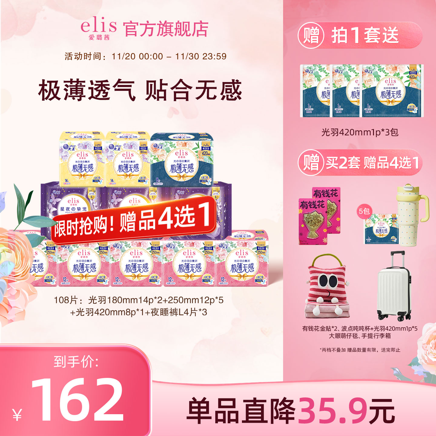 【赠品4选1】大王elis卫生巾官光羽姨妈巾星夜夜睡裤组合无感贴身,为您的生活带来舒适体验。这款产品精选优质材料,确保无刺激性,给您安心的使用感受。无论您是想要购买单一产品还是全套组合,都可以在我们的店里找到合适的选项。快来选购吧!