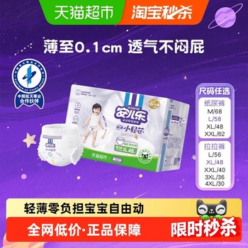 【秒杀】安儿乐小轻芯拉拉裤透气纸尿裤,【品牌金+88会员卷】柔薄透气,不断层,不起坨,不返渗,超能吸,锁水强,360度弹力腰围,超舒适小内裤,让宝宝活动轻松自如!