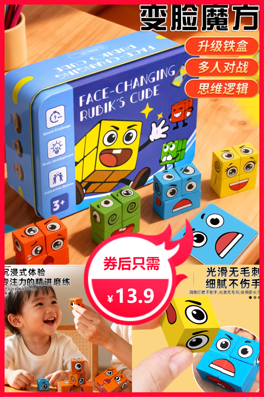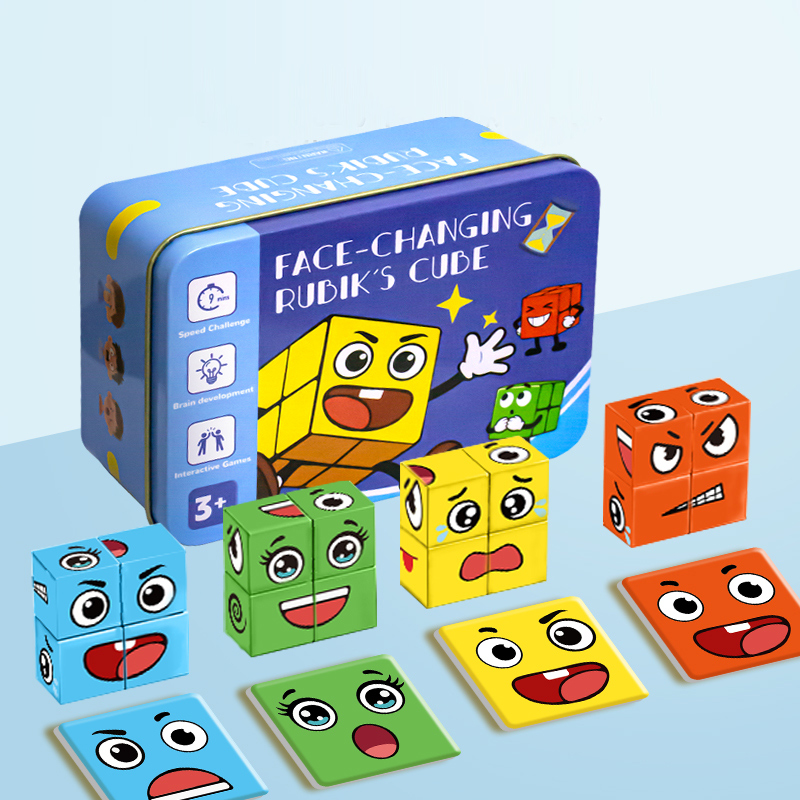 变脸魔方积木拼图,环保材质,光滑无毛刺,细腻不伤手,升级16粒实木积木,加厚铁盒收纳!益智亲子互动游戏,锻炼孩子专注力~