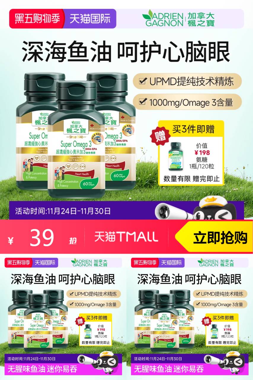 【立减104元,淘金币0.7元,到手38.3元】枫之宝1000mg深海鱼油omega3高浓度60粒,顺畅堵塞,心脑健康,磷脂型DHA,助力心脑健康。含有自然虾青素,中和人体自由基补充肌肤每日所需,鲜活透亮。