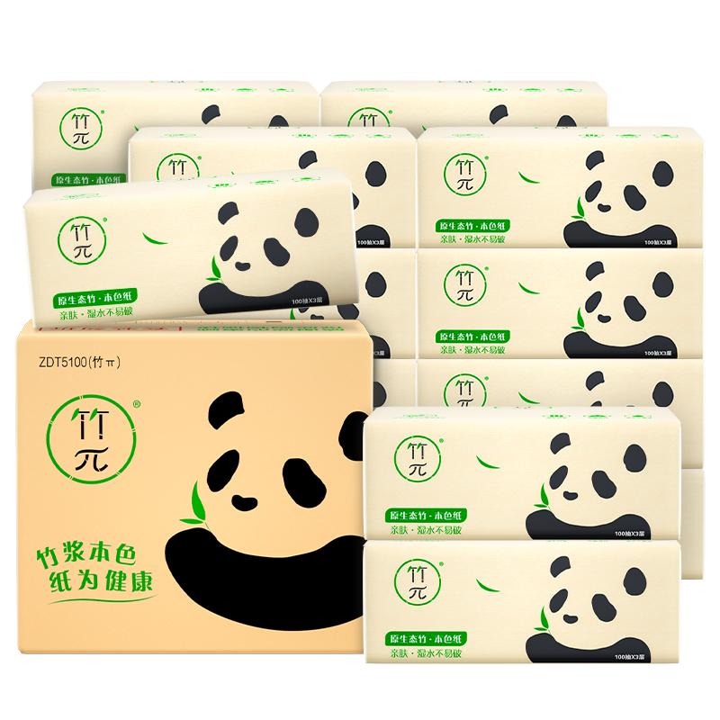竹π抽纸餐巾竹浆纸本色纸面巾纸实惠装100抽20包擦手卫生纸巾