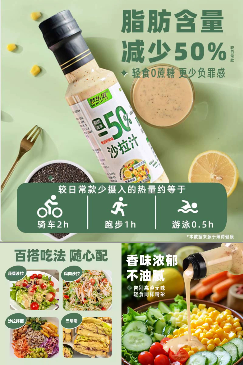 【2瓶装/瓶仅4.95元~商超同售要29】奇亚籽 0 蔗糖沙拉酱来救场!拌蔬菜沙拉时淋上,清爽口感裹满天然食材,还能吃到奇亚籽的细微颗粒感,轻食也能有满足感~浓郁芝麻香,口感醇厚,汁香细腻柔滑,酸甜可口,素材水果拌面拌饭,美味百搭,健康无添加,轻脂健身减肥好搭档~【赠运费险】