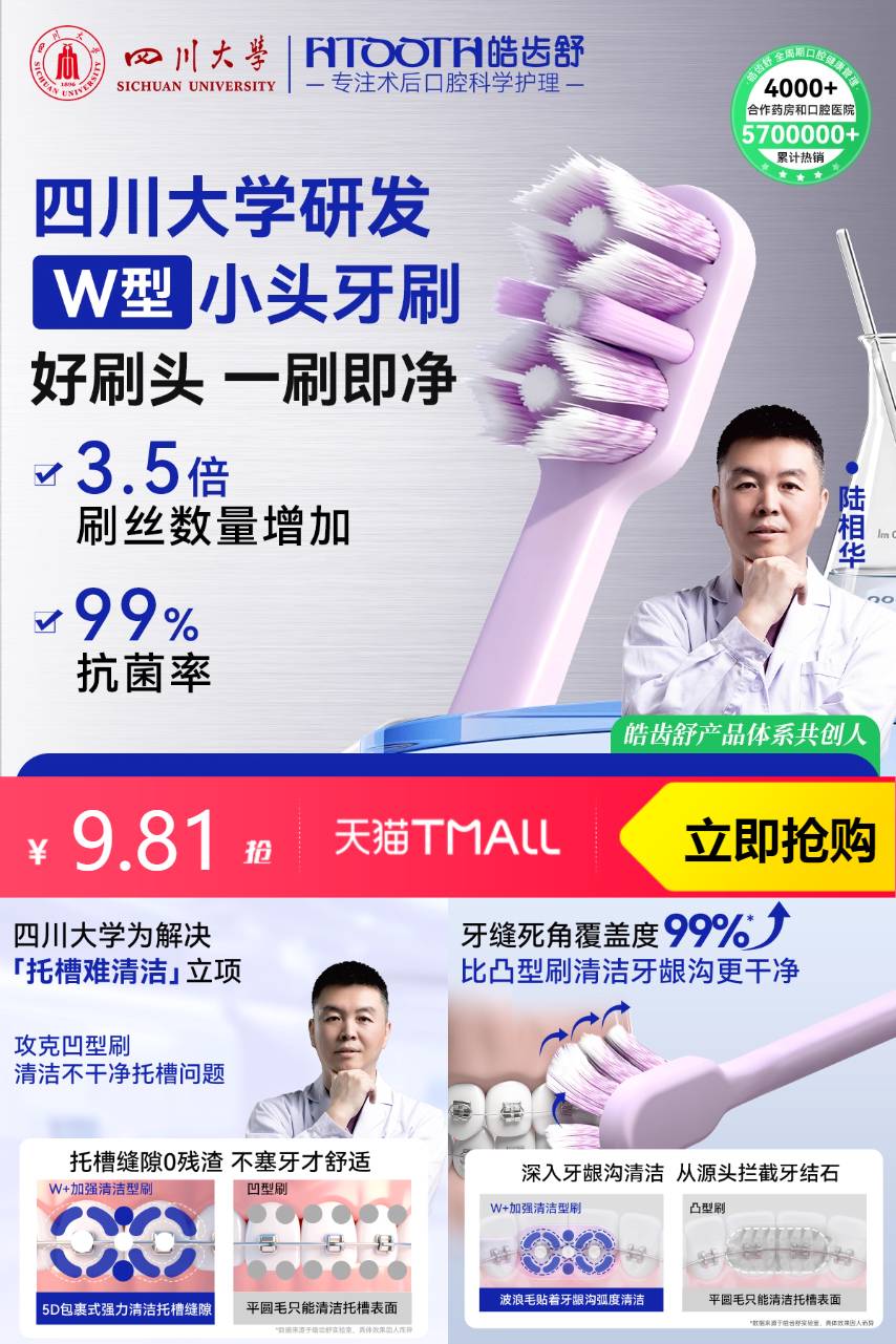 【淘金币抵扣0.44元,凑单200-20消费券减0.91元,到手价8.46元】清洁力超强,有效矫正牙齿,坚固刷毛,有效去渍。
