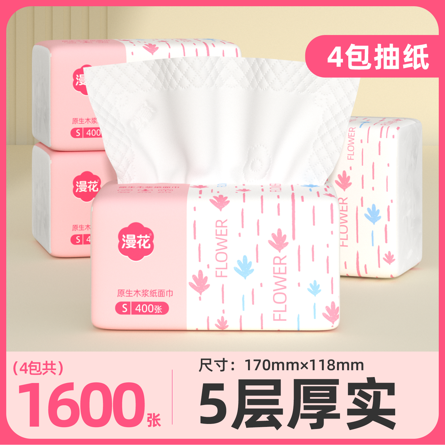 漫花纸巾抽纸家用实惠装卫生纸巾小包餐巾纸面巾纸卫生纸巾擦手