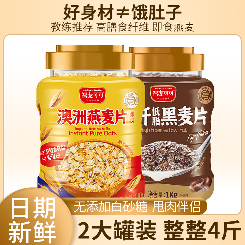 澳洲燕麦片低脂高纤黑麦片1000g桶装即冲即食无蔗糖健身早餐冲饮A