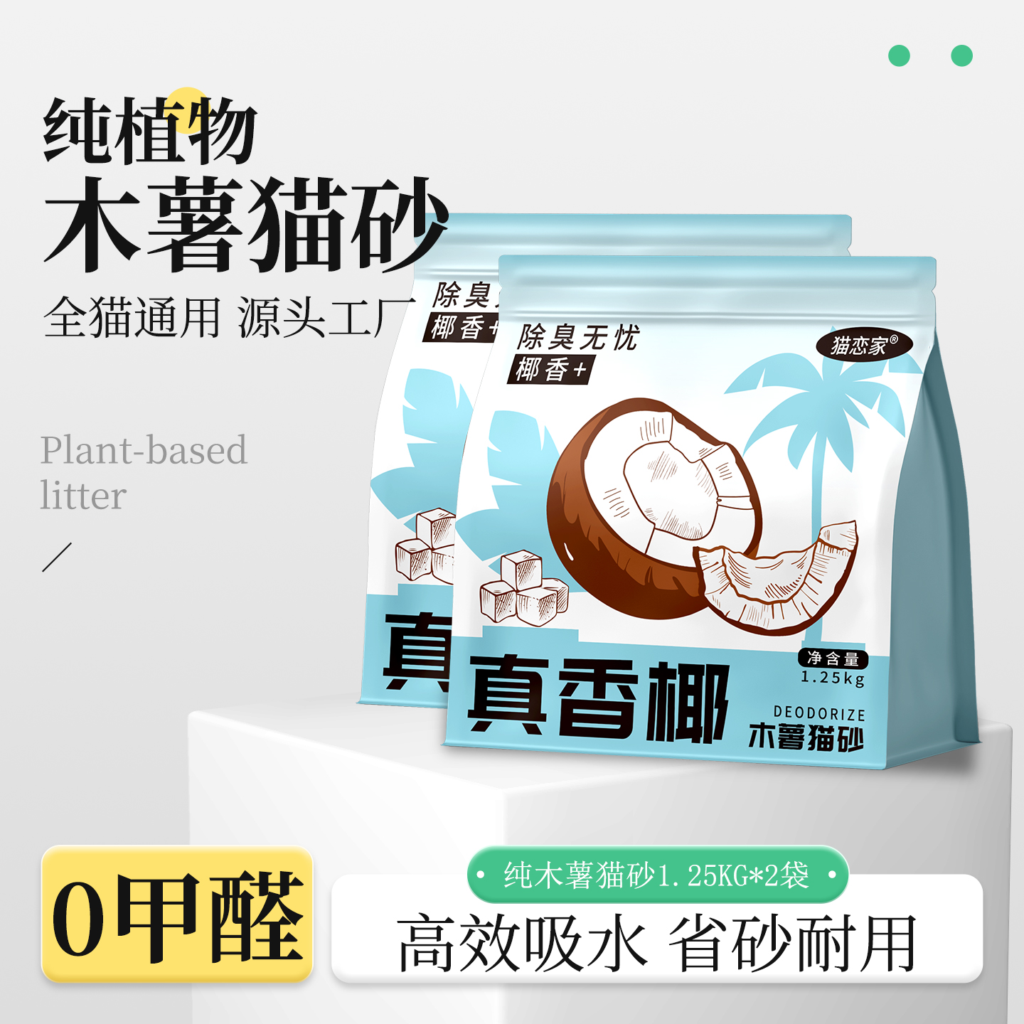 1.25KG*4袋纯植物木薯猫砂囤货装吸水结团低尘不易沾底植物砂批发