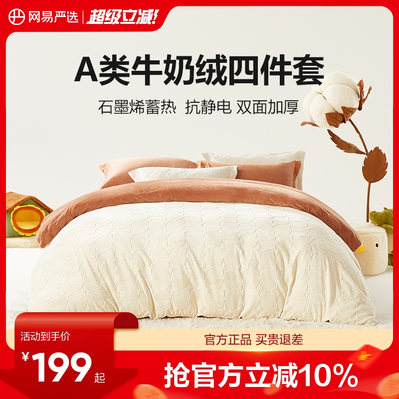 网易严选精选优质材料制作而成的牛奶绒四件套,采用加厚设计,了舒适度与保暖性。适合学生或喜欢温暖舒适的用户使用。法兰绒材质不仅透气性好,而且具有良好的保暖效果,是冬季必备的好选择。