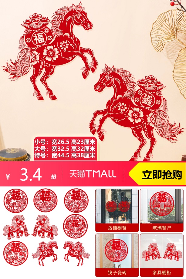 【立减0.49元】【首单+淘金币到手更划算】2026马年!防水、防晒、防褪色!新年福气到,兴旺早到家!喜庆大红色,色彩艳丽,给家增添一点氛围!元旦春节都可以贴上啦~~~