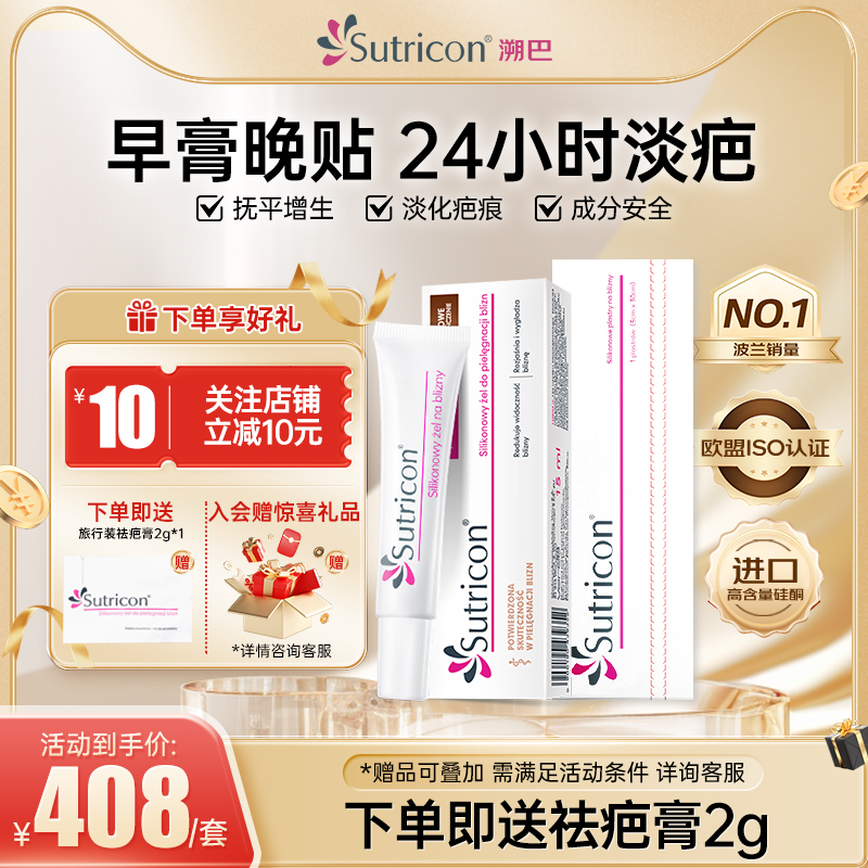 【早膏晚贴】溯巴SUTRICON祛疤膏是一款专业针对疤痕、痘印、妊娠纹等问题的医用硅酮凝胶,有效淡化修复疤痕,改善皮肤质地,令肌肤焕然一新。使用简单方便,适用于各种肤质人群。