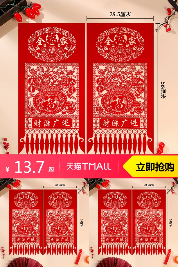 【签到+淘金币到手更划算】新年装饰,颜色靓丽,增添喜庆氛围。多种尺寸,内容可选,制作精细,植绒材质不易褪色,马上新年了,到货装饰起来吧~~