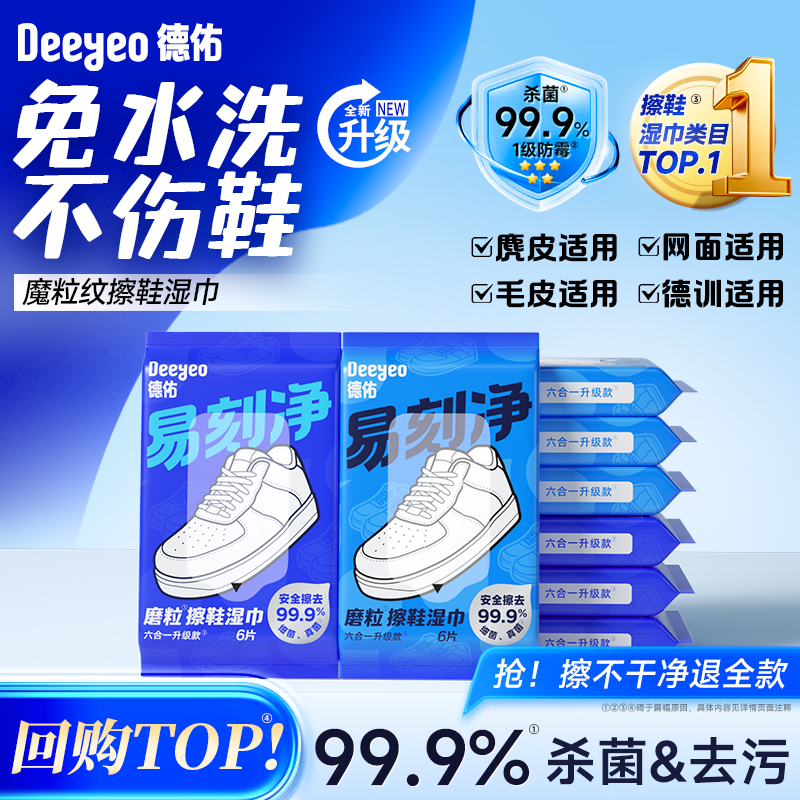德佑擦鞋湿巾专用免洗去污神器刷鞋洗鞋剂易刻净小白鞋清洁湿纸巾