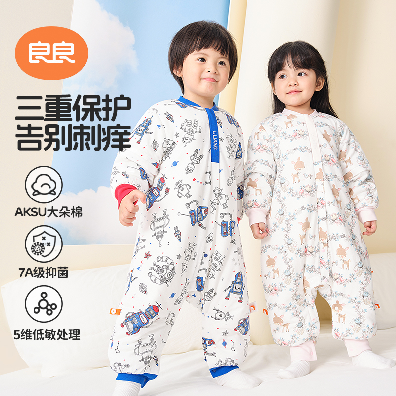 良良婴儿睡袋秋冬加厚宝宝防踢被中大童纯棉睡袋婴儿分腿睡袋