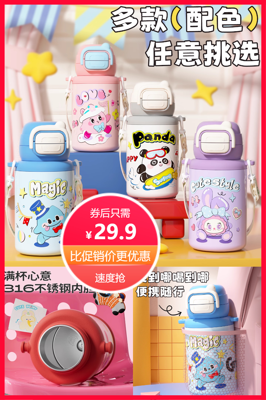送杯带+杯刷💰29.9起多款卡通联名儿童保温杯500ml、550ml规格任选,食品级361不锈钢内胆 ‼️直饮/吸管双饮 颜值萌趣