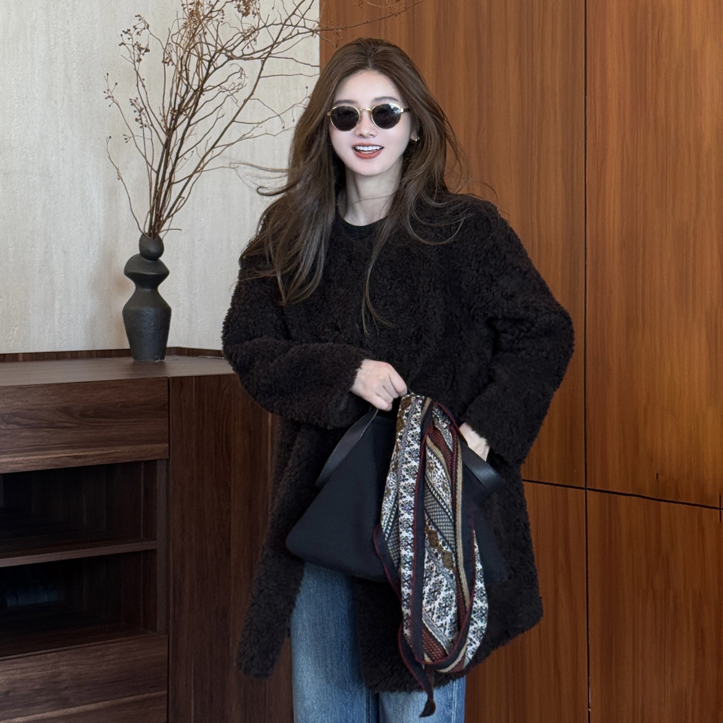 CHU楚妞[暖宸]羊毛抓绒单排扣短外套2025秋季新款女慵懒老钱大衣