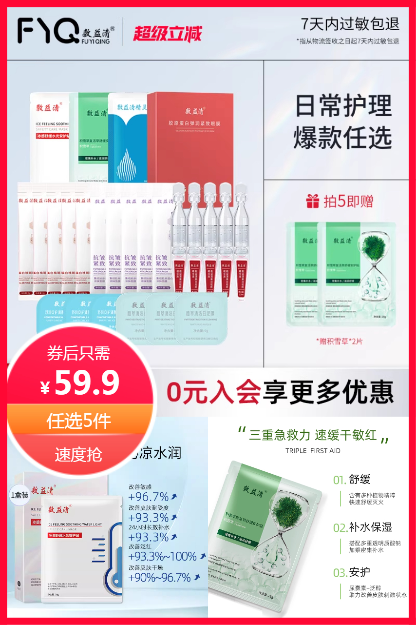 赠2片积雪草面膜,最-多到手27片面膜,透明质酸钠生物活性修复贴,主打修护补水,温和无刺激、适于各种类型肌肤.春季必备~