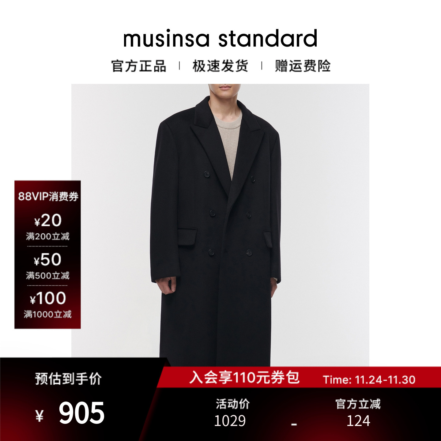 推荐:男士秋冬廓形羊毛混纺单排扣大衣