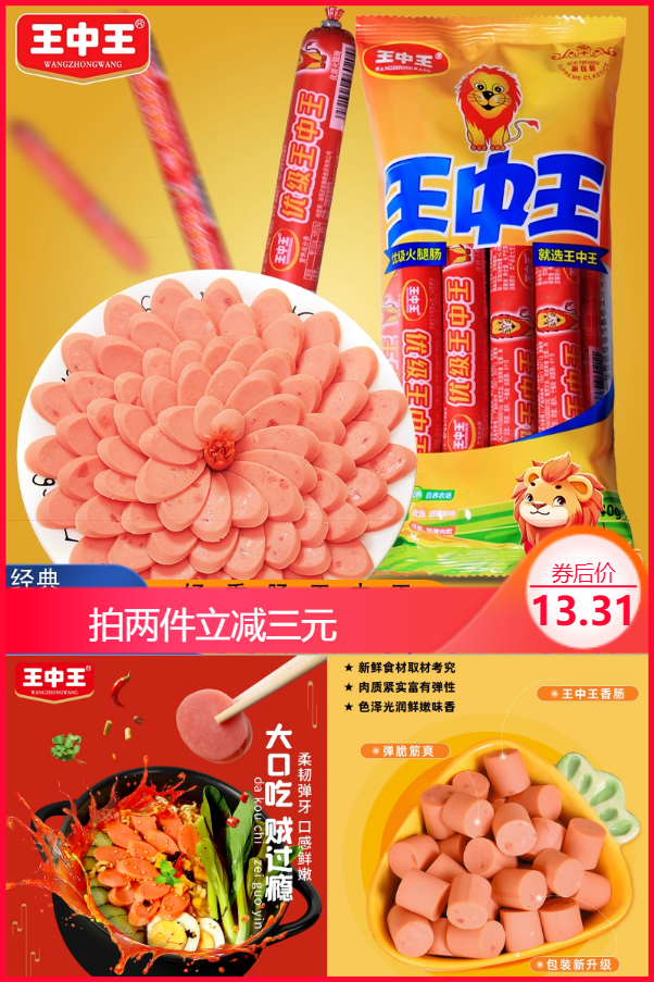 推荐:【拍两件立减三元】王中王优级火腿肠